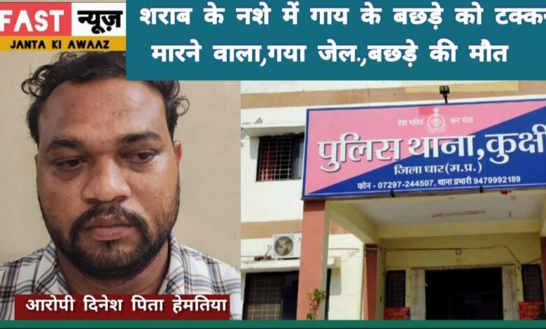 कुक्षी पुलिस टीम की त्वरित कार्यवाही की सराहना नाम गिरफ्तारशुदा आरोपी – दिनेश पिता हेमतिया भिण्डे निवासी खारकुंवा थाना नानपुर जिला अलिराजपुर घटना का संक्षिप्त विवरणः- थाना कुक्षी क्षेत्रान्तर्गत दिनांक 30/07/2025 को शासकीय चिकित्सालय कुक्षी के सामने काले रंग की हूटर लगी , कांचो पर काली फिल्म लगी स्कार्पियो वाहन को बेहद तेज रफ्तार व खतरनाक तरीके से चलाते हुये , सड़क के किनारे खड़े गाय के बछड़े को जोरदार टक्कर मार दी । टक्कर लगने से बछड़े के नाक व मुंह से खून की तेज धार बह निकली जो अत्यधिक रक्तसत्राव से बछड़े की मौके पर ही मृत्यु हो गई थी । पुलिस ने मध्य प्रदेश गोवंश प्रतिषेध अधिनियम धारा 4,9एवं भारतीय न्याय संहिता की धारा 325 के तहत अपराध दर्ज कर विवेचना प्रारंभ की।