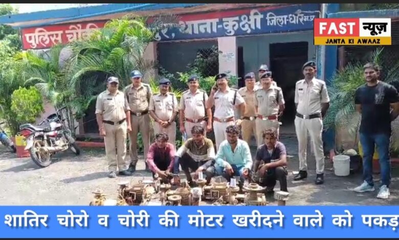कार्यालय पुलिस चौकी निसरपुर थाना कुक्षी जिला धार कर्षि मोटर चोरी करने वाले 4 शातिर चोरों को पकड़ा
