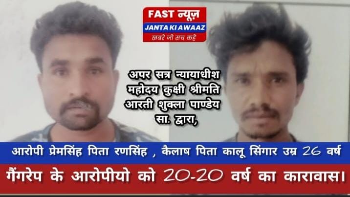 गैंगरेप के आरोपीयो को 20-20 वर्ष का कारावास सजा सुनाई अपर सत्र न्यायाधीश महोदय कुक्षी श्रीमति आरती शुक्ला पाण्डेय सा. द्वारा,
